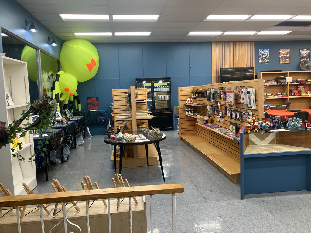 We are located on the bottom floor of the large brick building on the corner of E Main St and N 6th St in Cottage Grove Oregon. There is free street parking on Main St by the front entrance, as well as on 6th St, and E Whiteaker Ave behind the block. Our front entrance and most parts of the store are wheelchair accessible. We are open 2-10 Wed-Fri, and 12-8 Sat-Sun. Feel free to stop by any time!