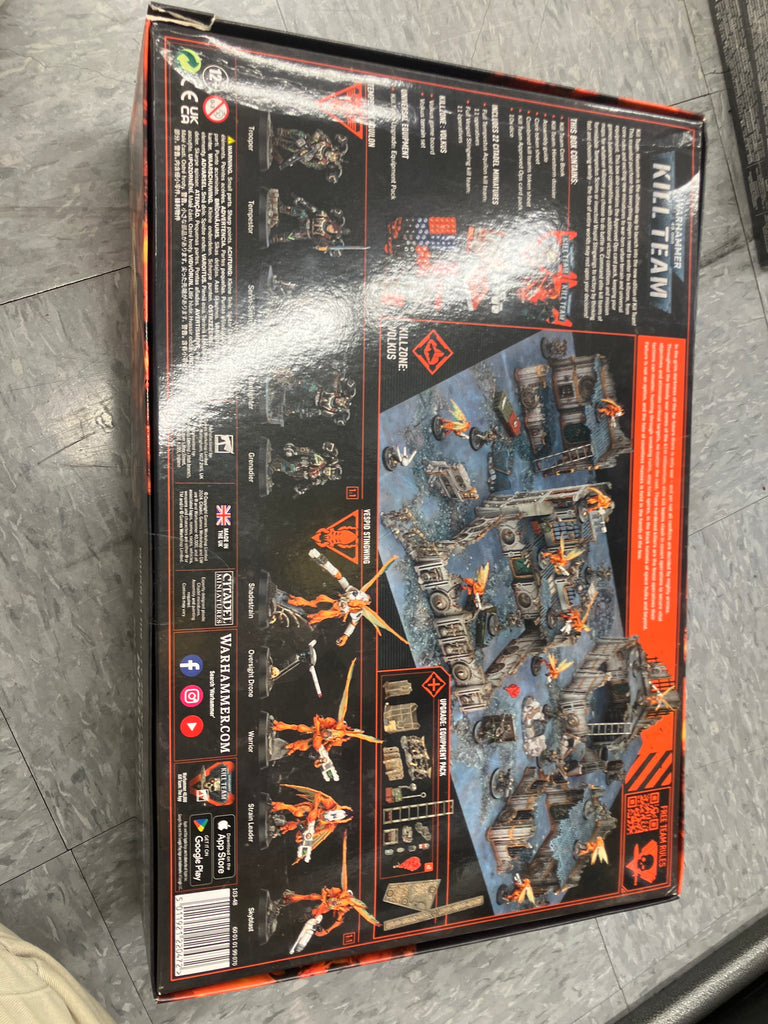 This box contains 22 all-new miniatures in two complete kill teams the daredevil special operatives of the Tempestus Aquilons and their foes, the sinister xenos Vespid Stingwings. They are battling for the fate of Volkus a planet which mounts one of the biggest guns in the galaxy, and a key strategic point in the wider battle for the Chalnath Expanse. Both teams come with numerous build options most can be built either as regular troopers or as key operatives with a diverse array of specialised skills, weapons, and gear. The Aquilons specialise in near-orbital drops directly on their targets, arriving with an automated servo-sentry gun, and an array of devastating Imperial arms, while the terrifyingly mobile Vespid flit about the killzone on their wings, laying waste with their advanced neutron guns. The box comes with a 112-page softback Core Book containing full rules for the new edition, and a 72-page Hivestorm Dossier going into details about the plot and the campaign for Volkus, and including the rules for both teams. VolkusTerrainYou also get a Core Token Sheet with 92 double-sided cardboard tokens, another token sheet with 55 tokens for your two teams, 36 Approved Operations Cards to build missions and objectives, a game board, 10 six-sided dice, plus 14 substantial pieces of new Killzone: Volkus terrain, and a Kill Team Equipment Pack containing 30 pieces of universal plastic equipment.