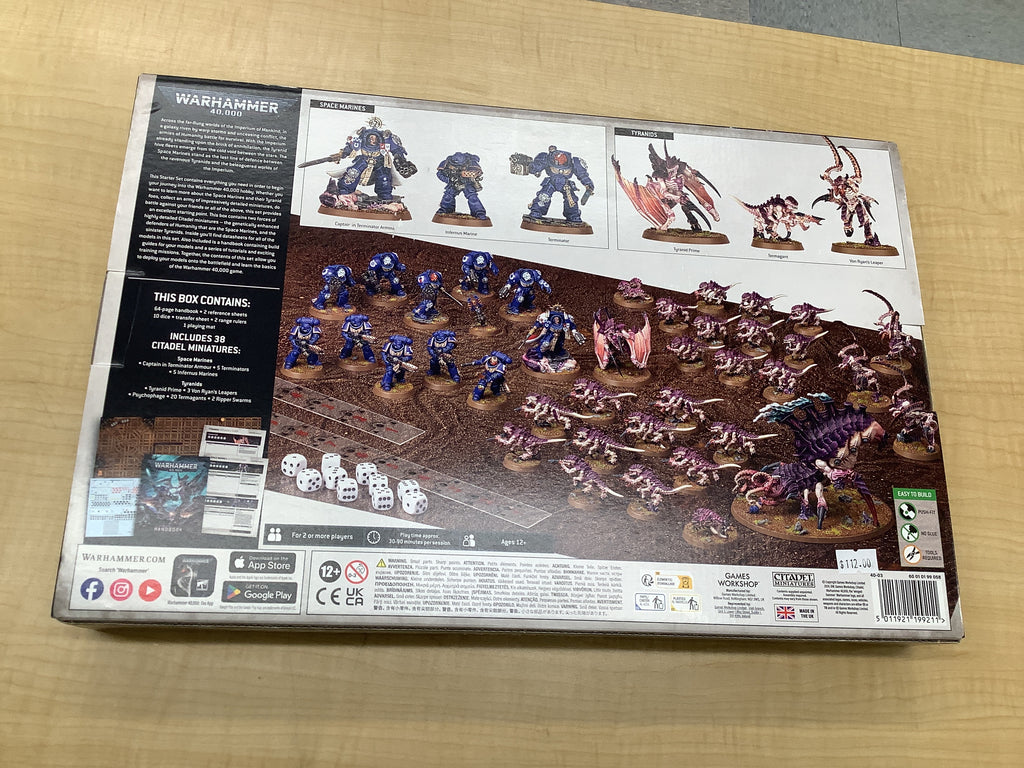 Take the plunge into the 41st Millennium with this Starter Set for Warhammer 40,000. This box gives you a compelling introductory experience, with incredible models, a game mat to fight over, helpful guides, and all the dice and tools you need to play your first games. Pick the noble Space Marines or swarming Tyranids, give control of the other army to a friend or family member, and battle it out for hours of entertainment. This box is a fantastic way to get into the Warhammer 40,000 hobby – it's also great for expandinng your existing collections.